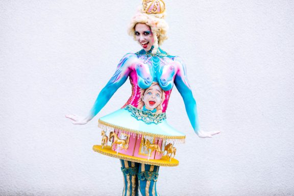 Katrin Rausch ist seit 2009 freischaffende Künstlerin aus Meiningen mit Herz und Leidenschaft für Kinder. Katrin Rausch gehört zu den bekanntesten Bodypainting-Künstlerinnen Deutschlands und begeistert mit einzigartigen Designs bei Wettbewerben, Festivals und Shows. Gleichzeitig bringt sie mit Kinderschminken, Mottopartys und kreativer Kinderanimation leuchtende Augen auf jede Feier in Meiningen, Südthüringen und Umgebung. Ob Glitzertattoos, Airbrush-Motive oder Riesenseifenblasen – Katrin macht Events für Kinder und Erwachsene zu einem besonderen Erlebnis. Buche Bodypainting-Kunst auf höchstem Niveau oder ein buntes Kinder-Highlight für deine Party.